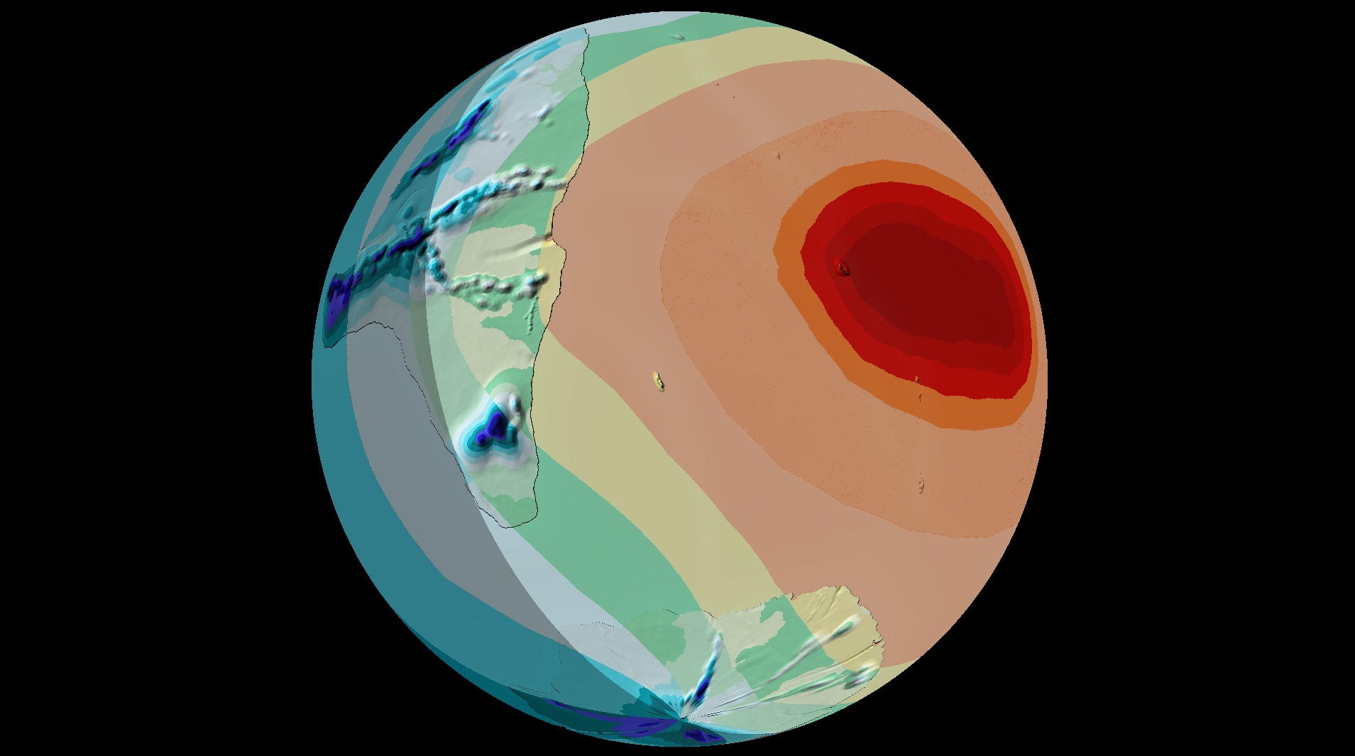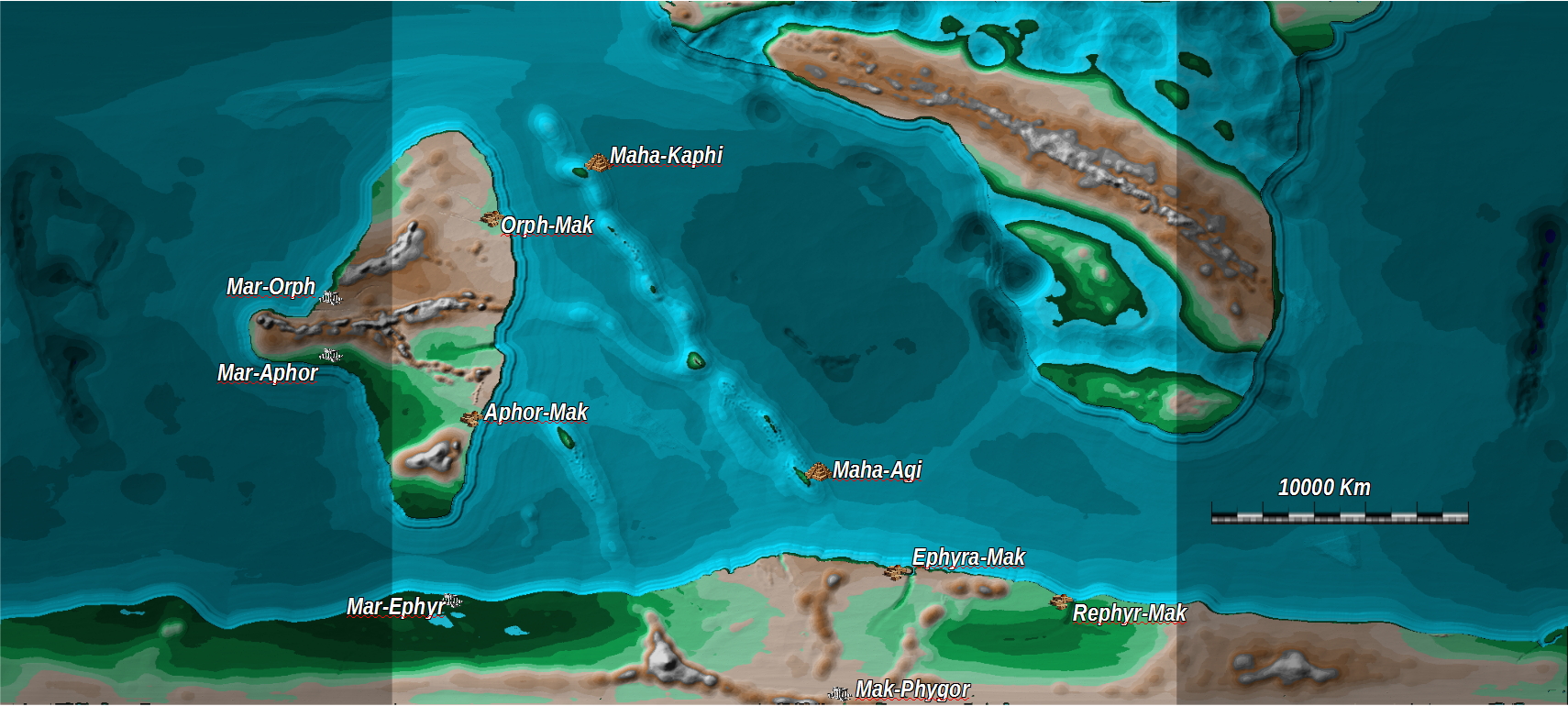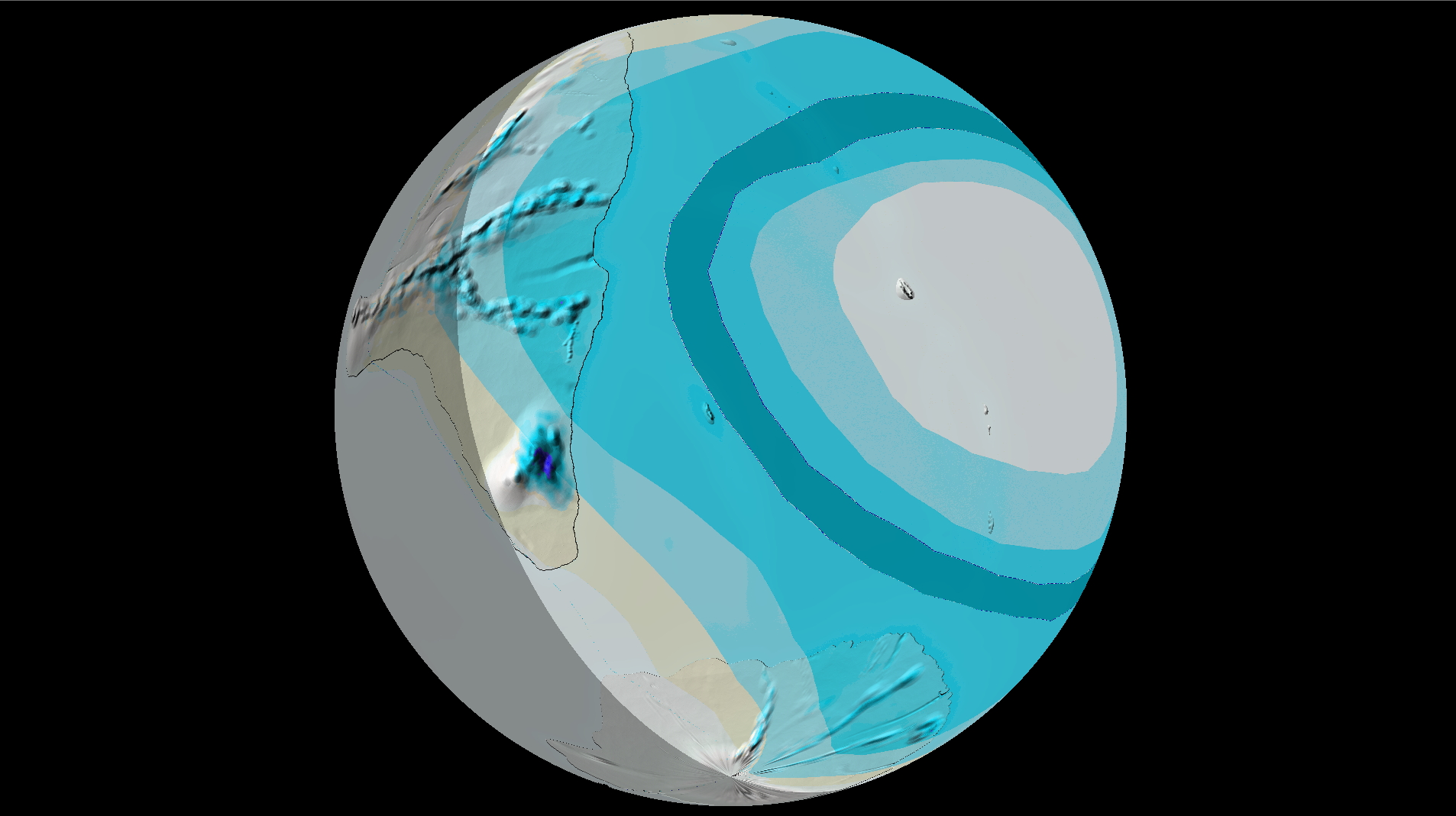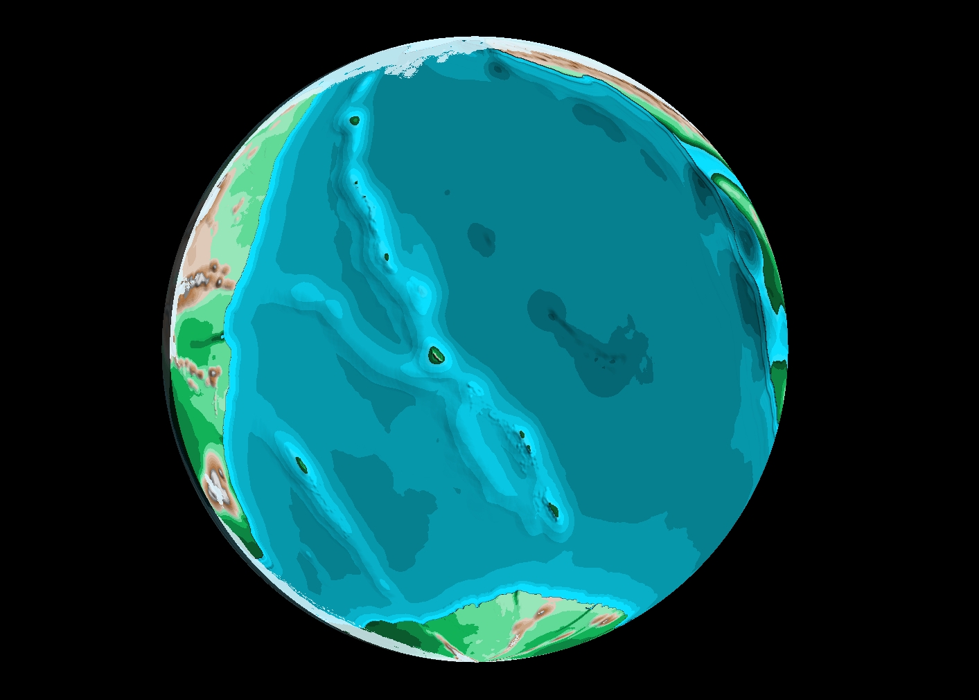 2.2 Temperaturen und Niederschläge, Sicht aus südwestlich vom Stellarpunkt verschobener Position mit Schattierung der Nachtseite. | |